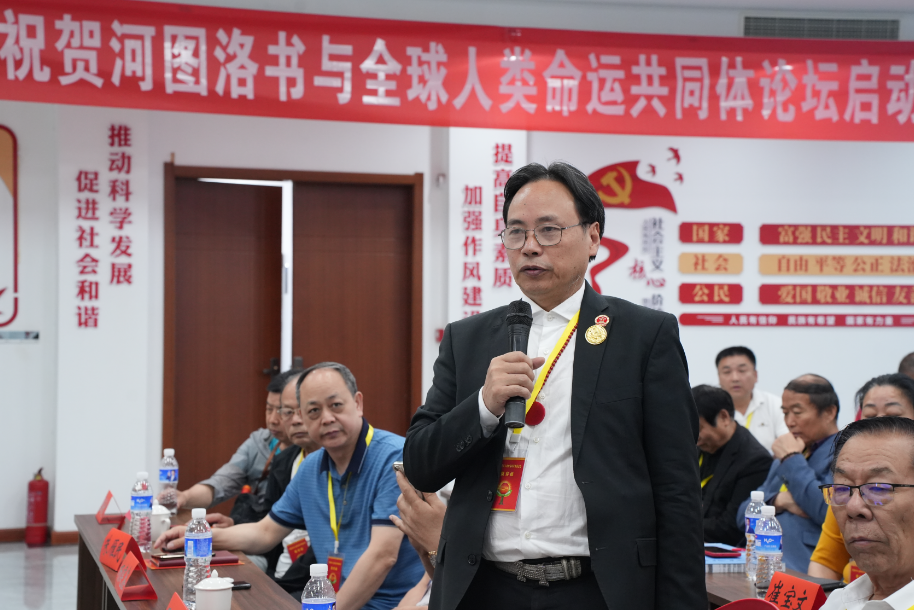 紧接着,组委会主席陈福强深入解读活动总概。他从河图洛书与全球人类命运共同体相结合的文化价值,到此次论坛对推动文化交流、促进世界和谐发展的深远意义,全方位、多层次地展现了论坛的宏伟蓝图,让大家对即将到来的论坛满怀憧憬。