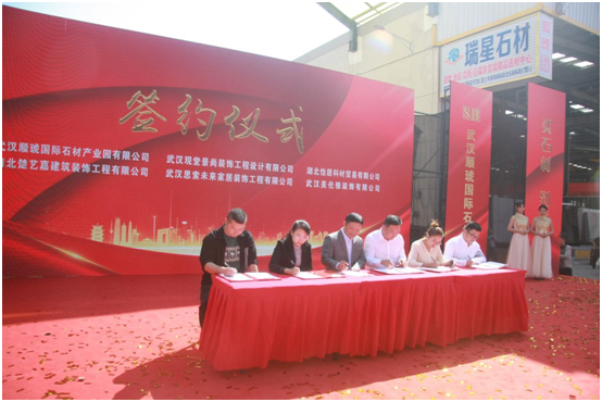 活动上,武汉顺琥国际石材产业园有限公司董事长王晓东致辞并对优秀商会和商户进行了表彰;兔宝宝、索菲亚、家居装饰等知名商家与产业园现场签订了战略合作框架协议。