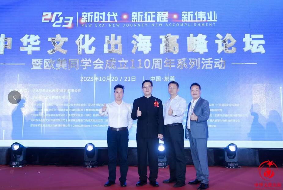 中国联合通讯社(副社长张立华,特约记者唐辉飞)东莞报道:2023年10月20日至21日,以“2023新时代·新征程·新伟业”为主题的【中华文化出海高峰论坛暨欧美同学会成立110周年系列活动】在广东·东莞隆重召开。来自全国各地的中华传统文化杰出代表、知名企业家代表、政府领导、主流媒体近千余人出席了本次会议。